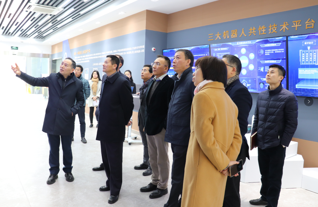 随后,市长一行重点考察参观了上海市机器人研发与转化功能型平台展厅,详细了解了平台概况、规模及数字化转型相关技术成果。